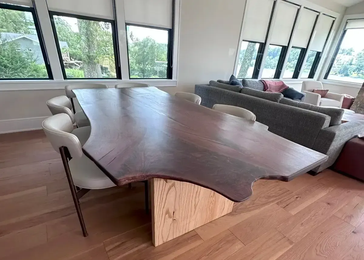 Looking to combine the natural with the industrial in your furniture design? By combining our stunning heirloom wood with the industrial look and feel of metal bases we create a harmony that offers the best of both worlds. You choose the tree that will give you the tone and feel you desire, the metal base that enhances the design of your space, and our master craftsman will construct the perfect piece.