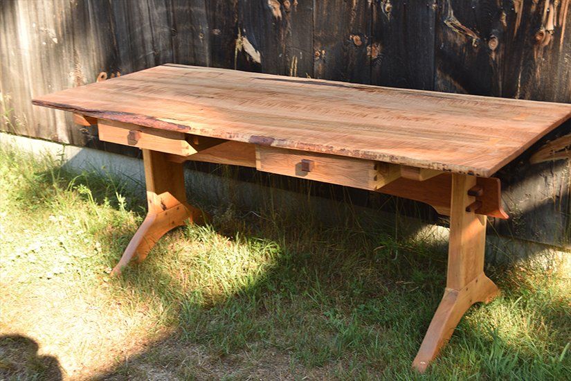 When you want a desk like no other, Gill CC Woodworks can create it. We work with you to create a design that meets your needs and captures the tone and feel you want. Crafted from a single heirloom tree harvested from our own forest, each desk tells a unique story. Bring the warmth and beauty of nature into your home or office with a one-of-a-kind desk crafted with love and respect for the tree.